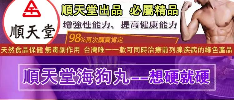 (直到有一天,我在網路上看到我們台産的(順天堂海狗丸) 介紹說是百分百的純中藥提取物,不含没有任何副作用,藥物功效上更是保證100%治療陽痿早洩,還可以讓陰莖增大7-15公分增粗3-8公分,房事時間40分鐘以上,輕微挑逗即可勃起,於是我想著至少服用不會影響內臟、不具有依賴性。我便立即決定讓丈夫試一試! )