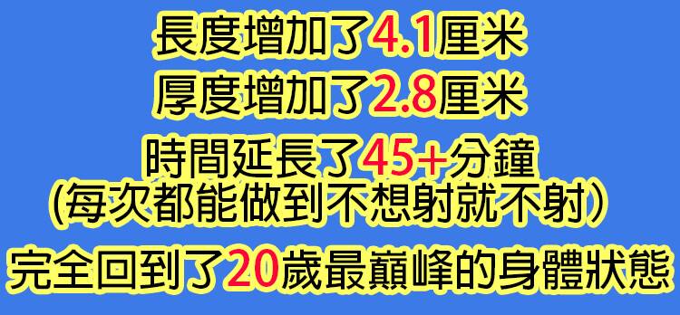 始始增長,陽萎、早洩、攝護腺炎症基本消除,事後無疲勞感。
